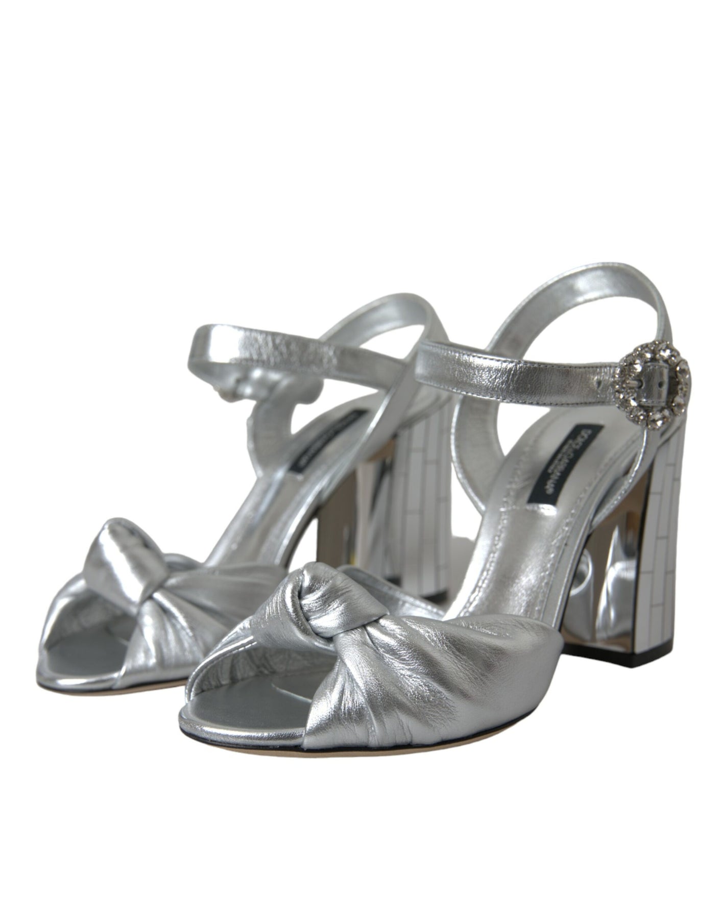 Dolce & Gabbana Silver Lambskin Leather Heels Sandals Shoes
