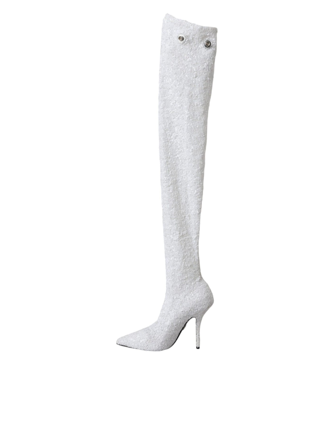 Dolce & Gabbana White Heels Stiletto Knee High Boots Shoes