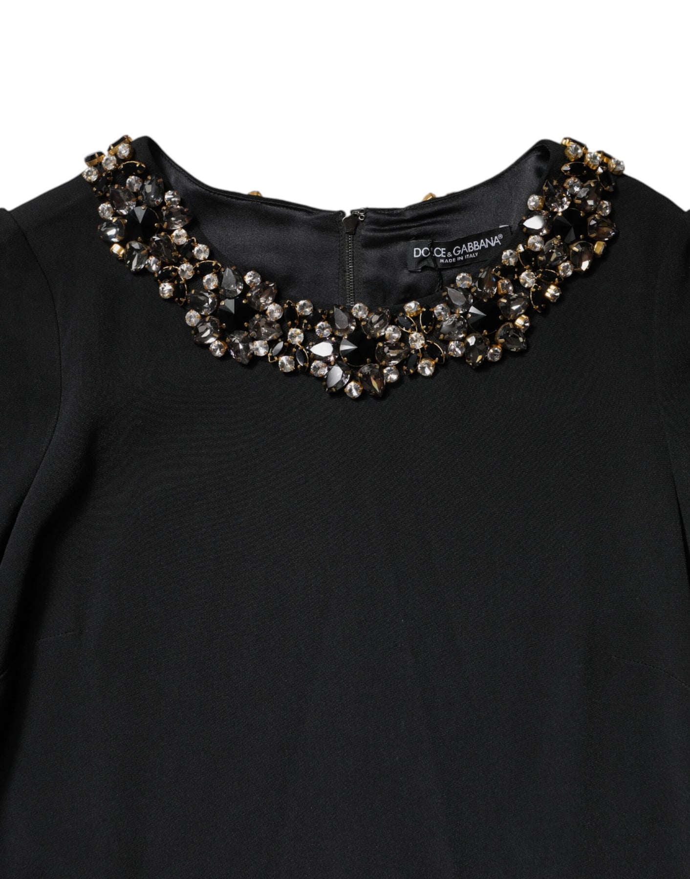 Dolce & Gabbana Black Crystal Embellished Round Neck Mini Dress