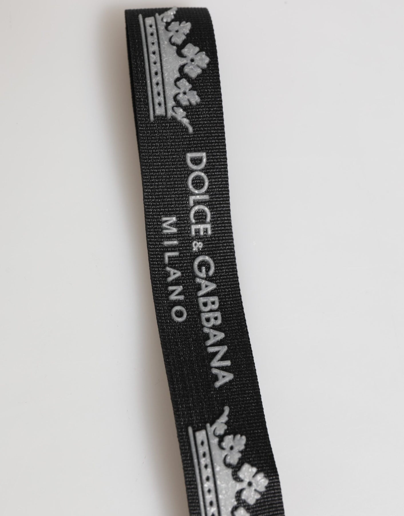 This stylish DG Crown keychain holder is crafted from a combination of black nylon and silver-tone metal, designed with the brand’s signature crown logo for a luxurious finishing touch. Perfect as a statement accessory for securing your keys or attaching to bags for added elegance.