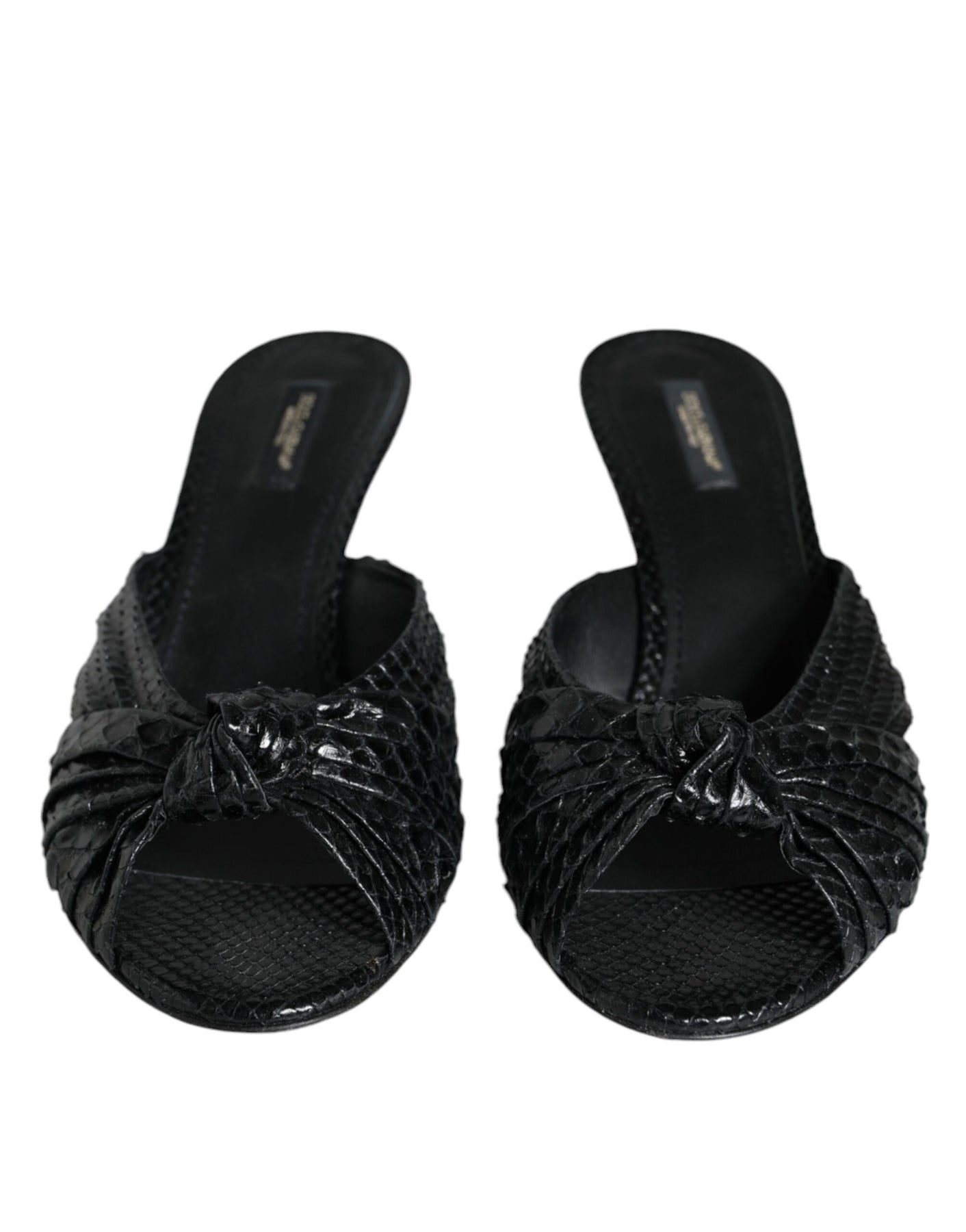 Dolce & Gabbana Black Leather Heels Slides Sandals Shoes