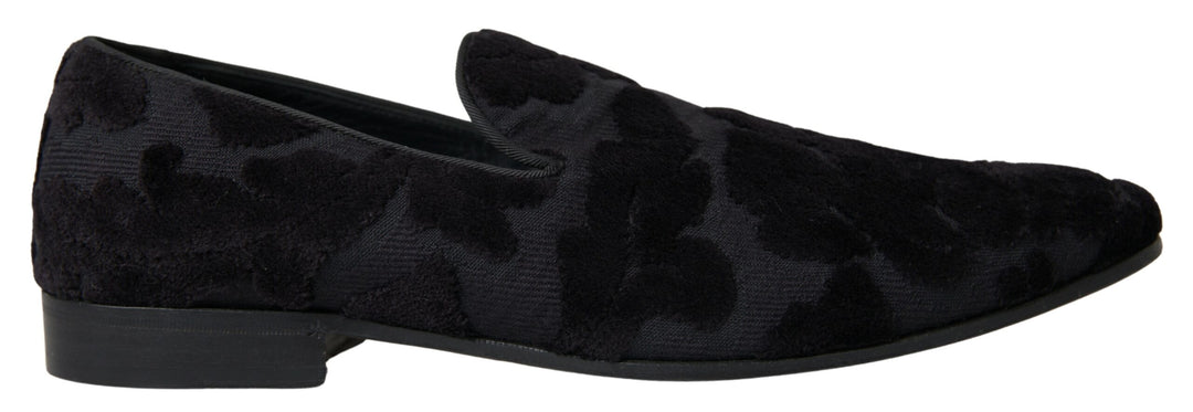 Dolce & Gabbana Black Brocade Loafers Formal Shoes