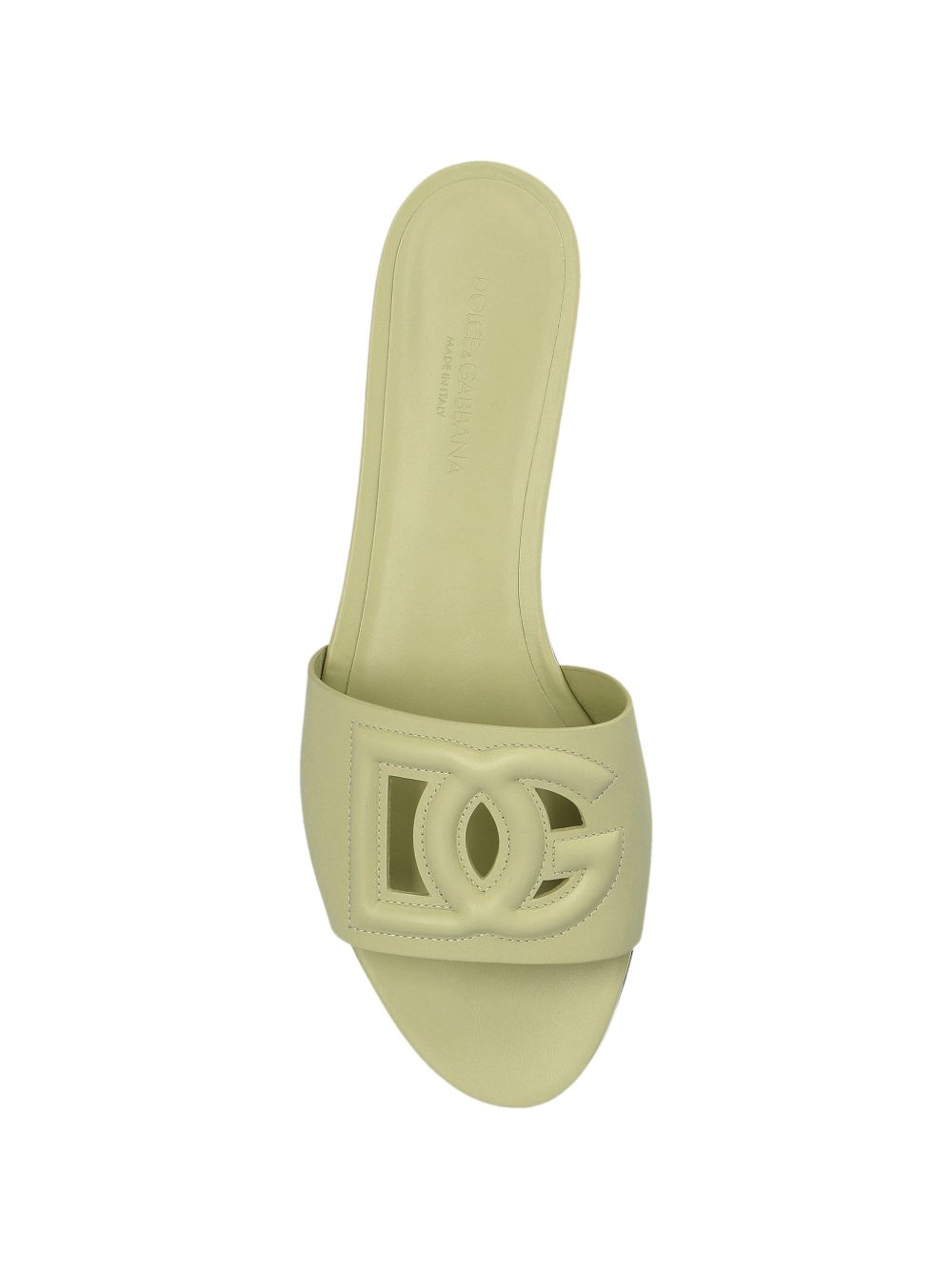 white calf leather embossed logo to the front cut-out detailing almond toe branded insole flat rubber sole DG Logo leather flat sandals Size and Fit - Heel 0,6 in / 1,5 cm