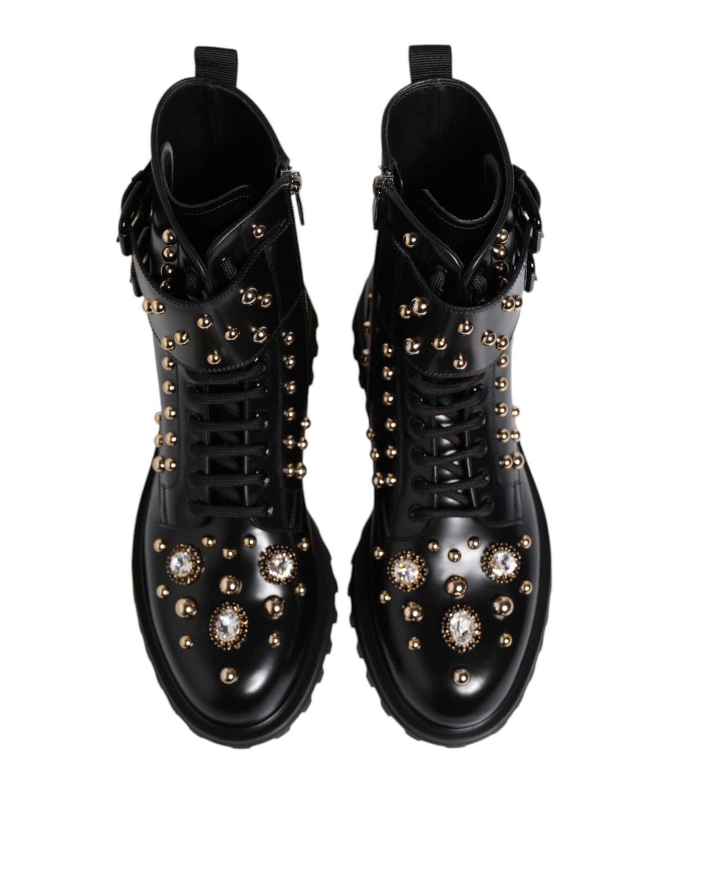 Dolce & Gabbana Black Studded Lace Up Mid Calf Boots Shoes