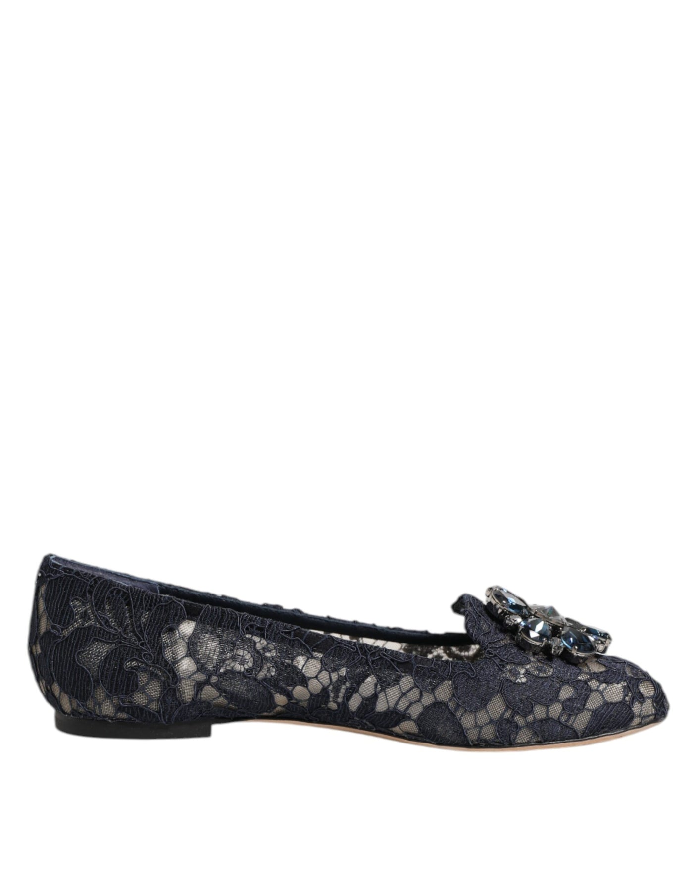 Dolce & Gabbana Blue Taormina Lace Crystals Flats Shoes