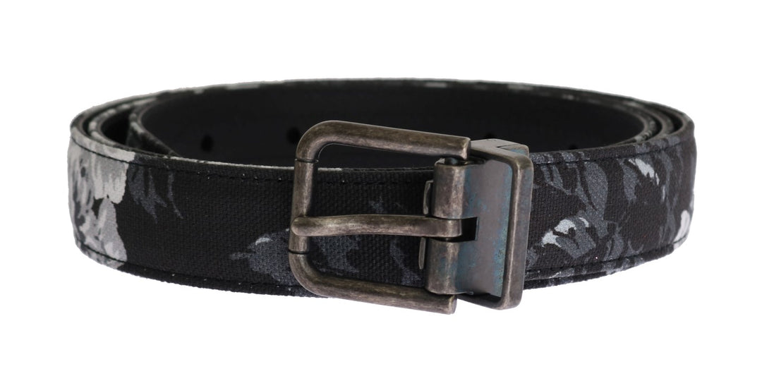 Dolce & Gabbana Blue Cotton Leather Printed Metal Buckle Belt