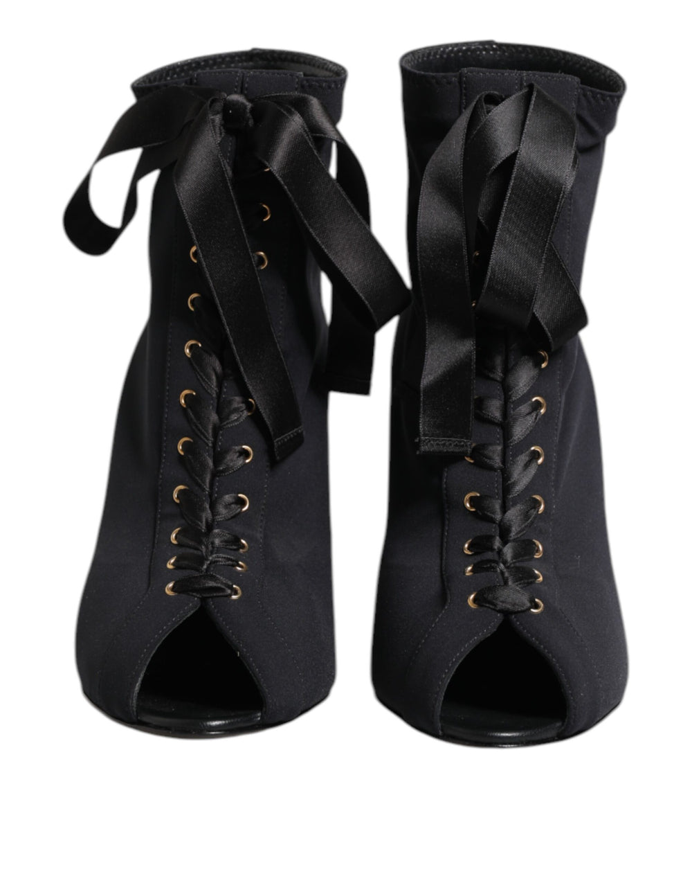 Dolce & Gabbana Black Stiletto Heels Lace Up Boots Shoes