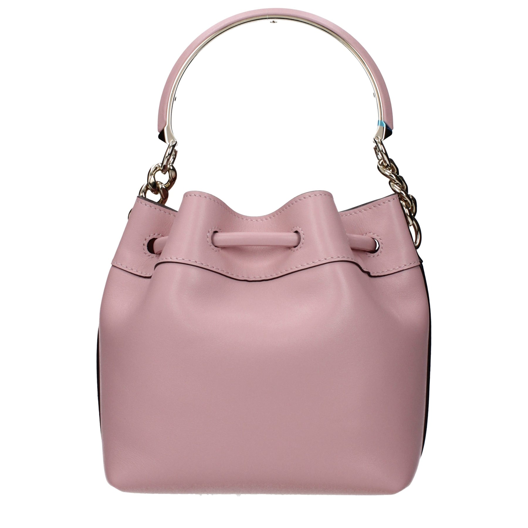 The product with MPN BONBONBUCKETSOSQMROSELIGHTGOLD and code F85730 leather in pink is a handbags designed by Jimmy Choo. It has features like front logo, adjustable shoulder, removable shoulder.