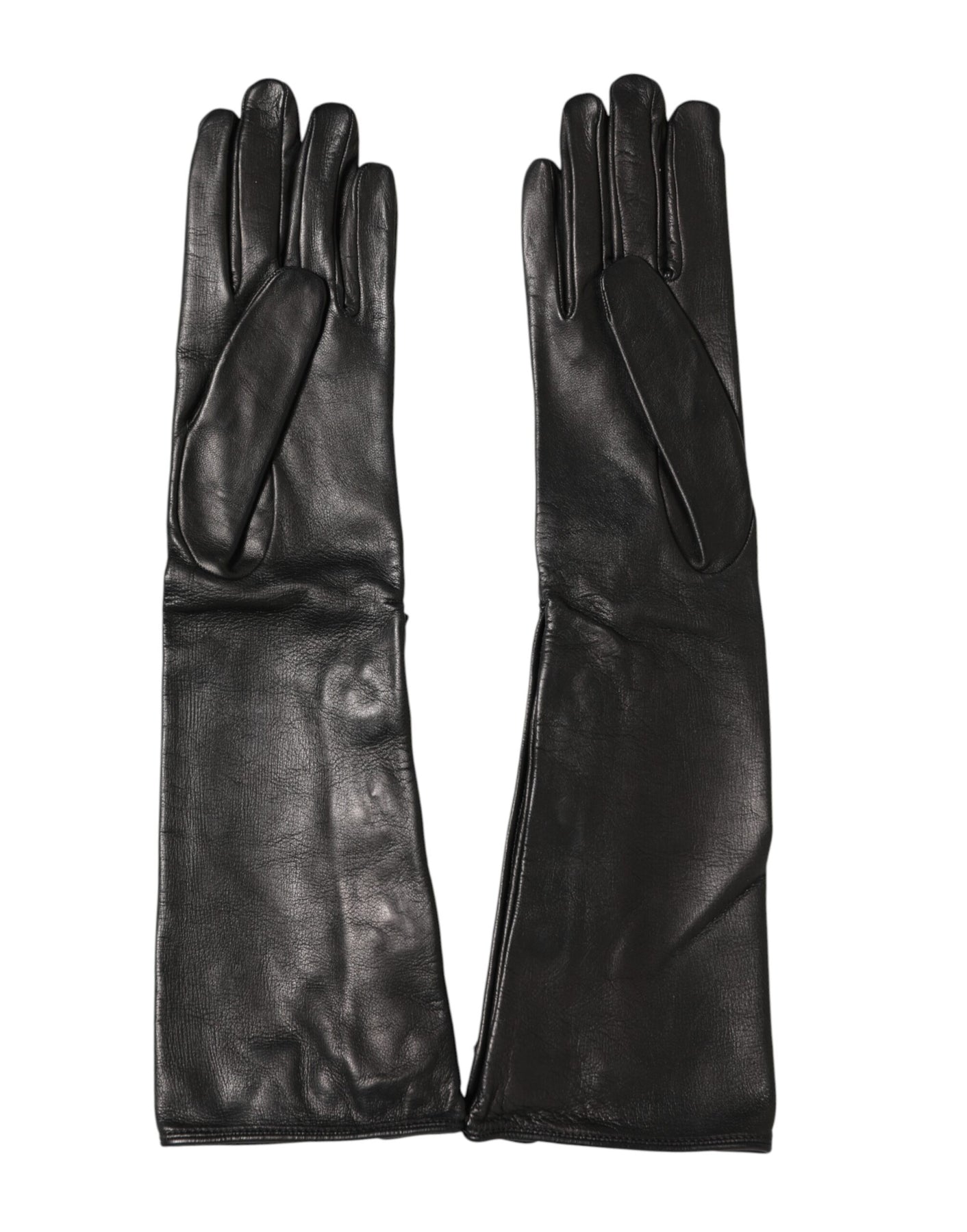 Gorgeous brand new, 100% Authentic Dolce & Gabbana Gloves Black Leather Embellished Long Mitten — Luxuriously crafted from smooth black leather, these long mittens feature exquisite embellishments that add a touch of glamour. Combining timeless elegance with DOLCE & GABBANA’s signature artistry, they make a striking statement accessory for refined, fashion-forward looks.